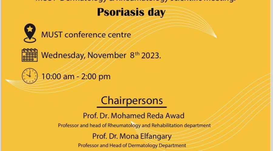 Under the patronage of professor Nehad El Mahboub Acting president of Misr University for Science and Technology and Dean of Faculty of Medicine, Departments of Dermatology, Venereology & Andrology and Rheumatology hold the meeting under the title of “Psoriasis Day”.Read More