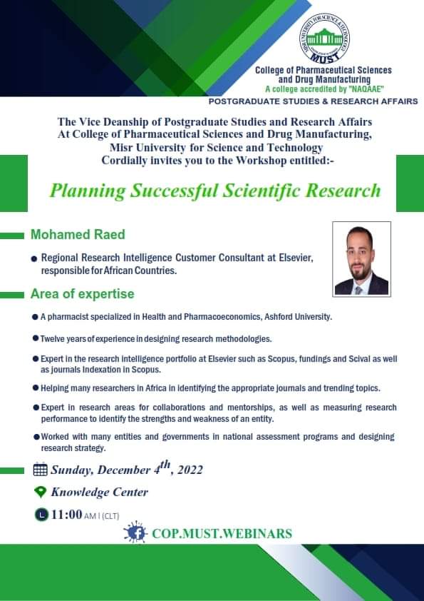 Pharmaceutical sciences combine a wide range of scientific disciplines that are critical for the discovery and development of new drugs and therapies, with the ultimate goal to improve public health and quality of life. Considering this mission, the College of Pharmaceutical Sciences and Drug Manufacturing, Misr University for Science and Technology welcomes you to the 2nd International Conference of Pharmaceutical Sciences (ICPS-2) “Future Perspectives on Drug Research and Sustainable Development”. The conference will focus on promoting new fields of research in pharmaceutical sciences, as well as future trends in a variety of areas. It will hopefully stimulate cooperation between business and academics. In addition, it will provide the chance to debate and exchange innovative perspectives and ideas. The conference aims to achieve a wide range of goals foremost of which is to provide a comprehensive definition of sustainable development, with a focus on achieving good health and well-being, waste management, quality education, and partnership for the goals of knowledge sharing and cooperation for access to science, technology, and innovation.