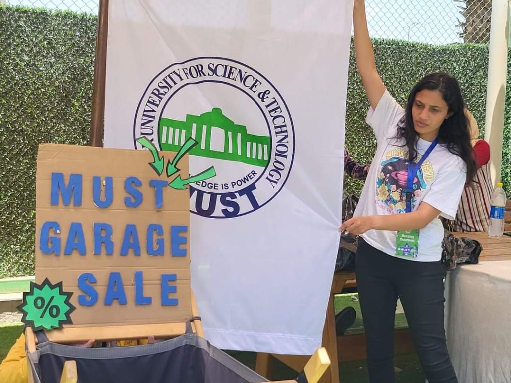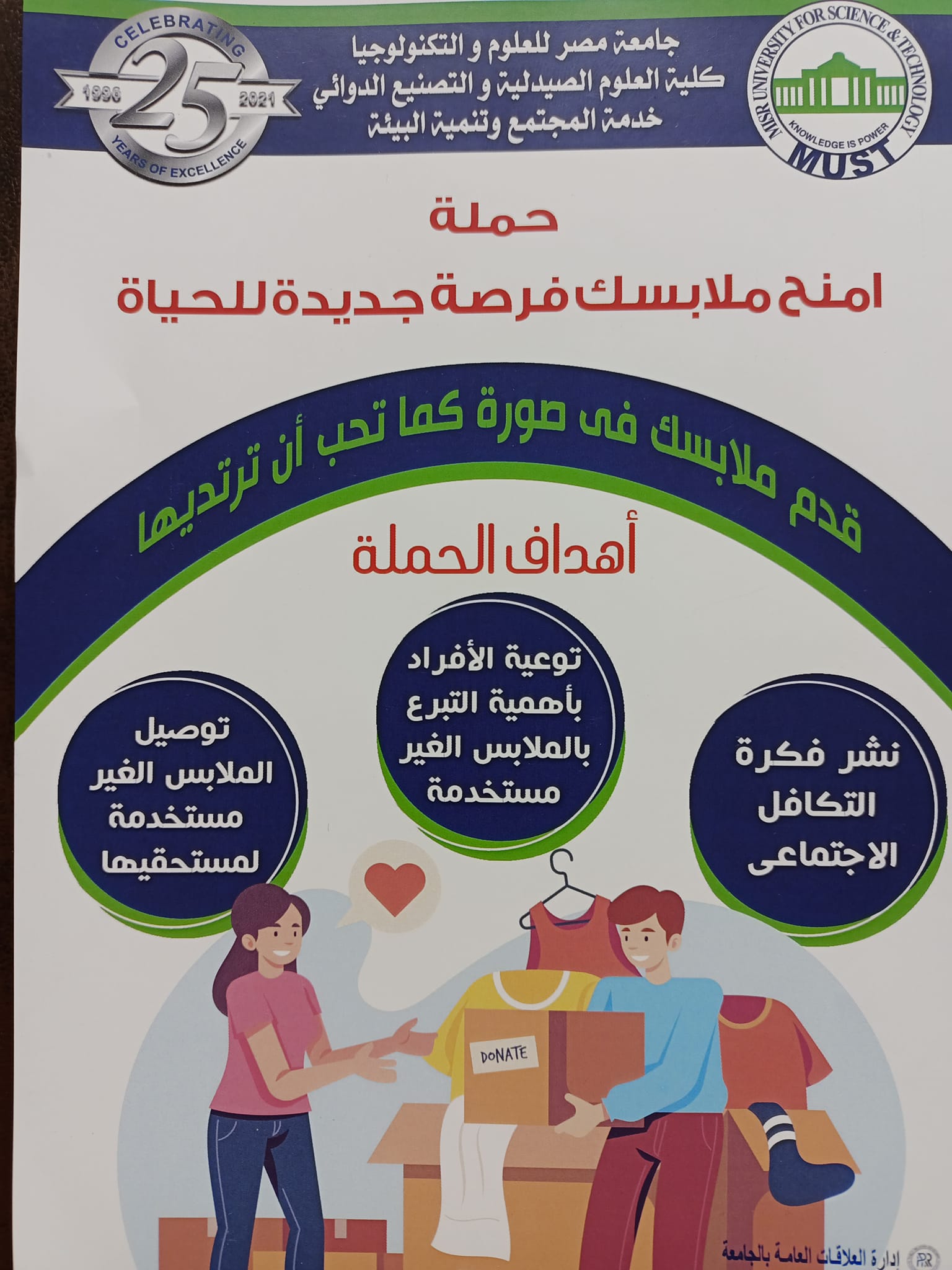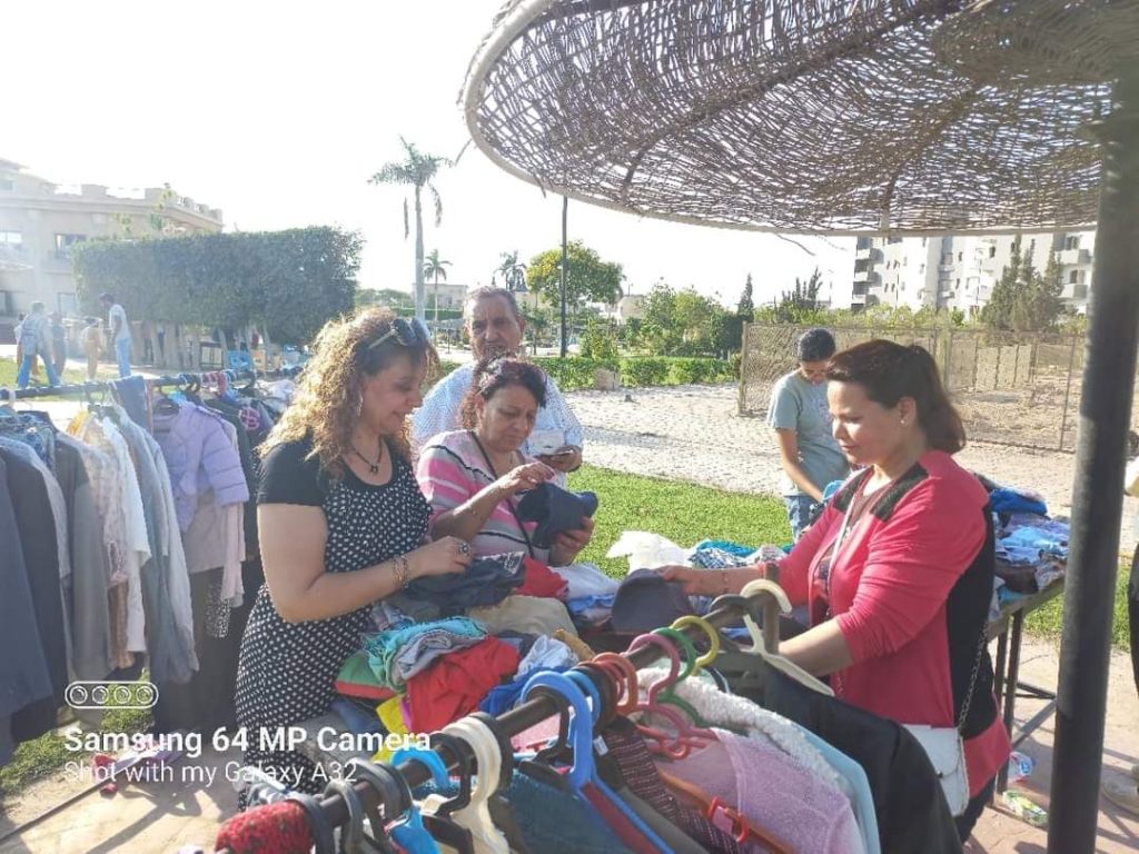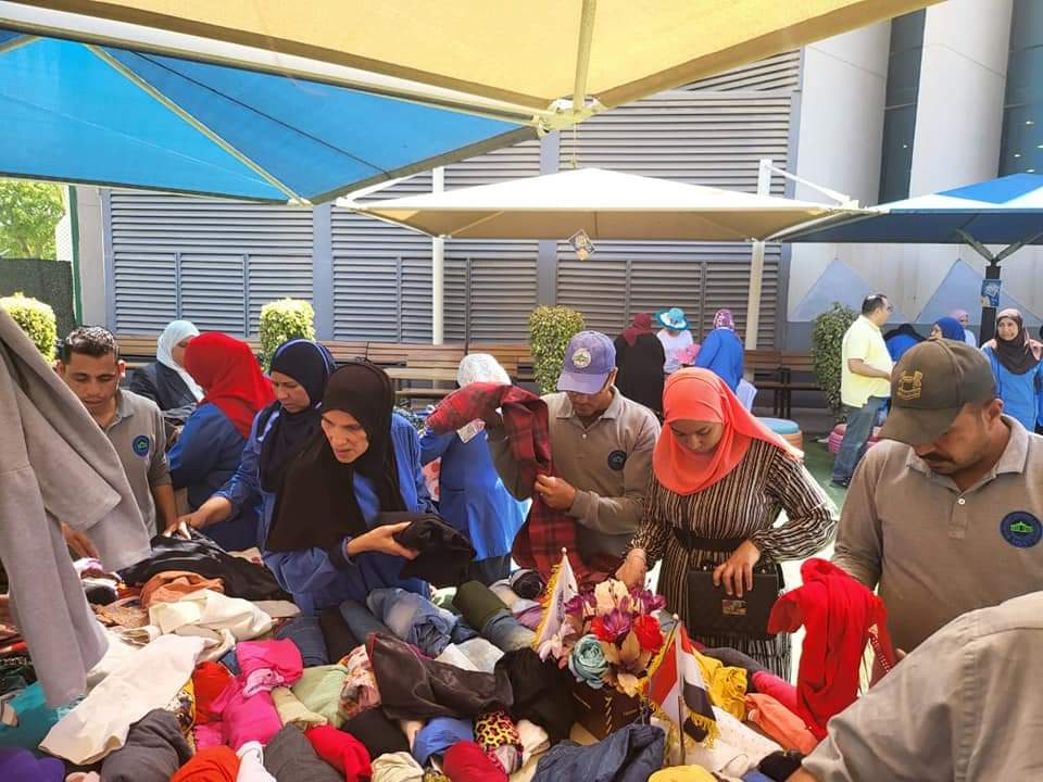 قامت لجان خدمة المجتمع وتنمية البيئة بجمع الملابس المستغنى عنها وإيصالها لمستحقيها على عدة دفعات وذلك إيمانًا بدورها في خدمة المجتمع والتكافل بين فئاته وسياسة الاستخدام الأمثل وعدم الإهدار للموارد في هذه المبادرة وفي عدة فعاليات أخرى مثل كرنفال العيد Garage Sale كلها تهدف إلى الاستدامة