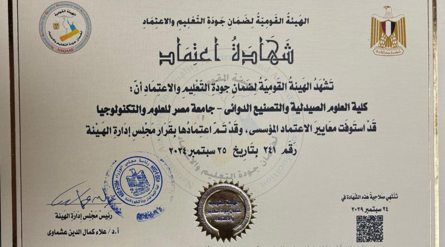 تعلن كلية العلوم الصيدلية والتصنيع الدوائي لجامعة مصر للعلوم والتكنولوجيا عن تجديد الاعتماد المؤسسي من الهيئة القومية لضمان جودة التعليم والاعتماد. ويأتي هذا التجديد نتيجة للجهود المستمرة التي تبذلها الكلية في تحسين جودة التعليم والبحث العلمي، بما يتوافق مع معايير الجودة العالمية هذا ويعد تجديد الاعتماد خطوة هامة نحو تعزيز مكانة الكلية بين المؤسسات التعليمية الكبرى، ويعكس التفوق المستمر للجامعة في تقديم تعليم متميز يتواكب مع أحدث التطورات في مجالات...Read More
