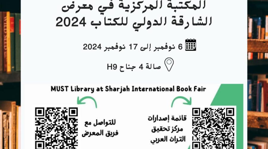 تُعلن المكتبة المركزية لجامعة مصر للعلوم والتكنولوجيا عن مشاركتها بمعرض الشارقة الدولي للكتاب 2024 بدورته الـ43 بإمارة الشارقة من خلال عرض وتوزيع إصدارات مركز نشر المكتبة المركزية ومركز تحقيق التراث العربي، وذلك في الفترة من الأربعاء 6 نوفمبر 2024 حتى الأحد 17 نوفمبر 2024 بصالة 4 جناح .H9رابط قائمة إصدارات مركز نشر المكتبة المركزية ومركز تحقيق التراث العربي https://drive.google.com/…/1dgca9…/view… للاستفسارات والتواصل مع فريق المعرض https://chat.whatsapp.com/JQjxBc2tHWFAZvhHwkJSGVRead More
