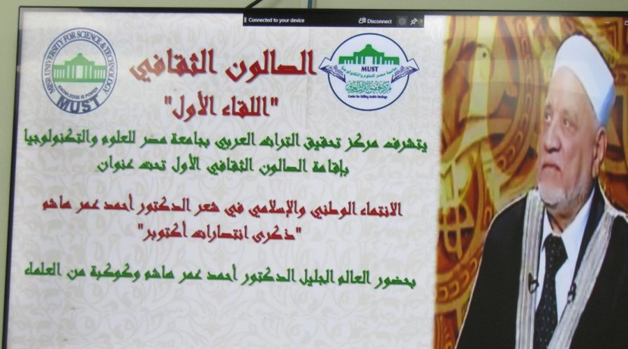 كتب عبد الرحمن هاشم: أضفى مركز التراث العربي بجامعة مصر للعلوم والتكنولوجيا برئاسة الأستاذ الدكتور أنس عطية الفقي خصوصية على احتفالاته هذا العام بانتصارات أكتوبر، فأقام صالونه الأدبي الإسلامي في نسخته الأولى وخصصه لتناول “الانتماء الوطني والإسلامي في شعر فضيلة الأستاذ الدكتور أحمد عمر هاشم” وذلك صباح يوم السبت 2 من ربيع الآخر 1446هـ الموافق 5 من أكتوبر 2024م، وحضره المحتفى به الأستاذ الدكتور أحمد عمر هاشم عضو هيئة كبار...Read More