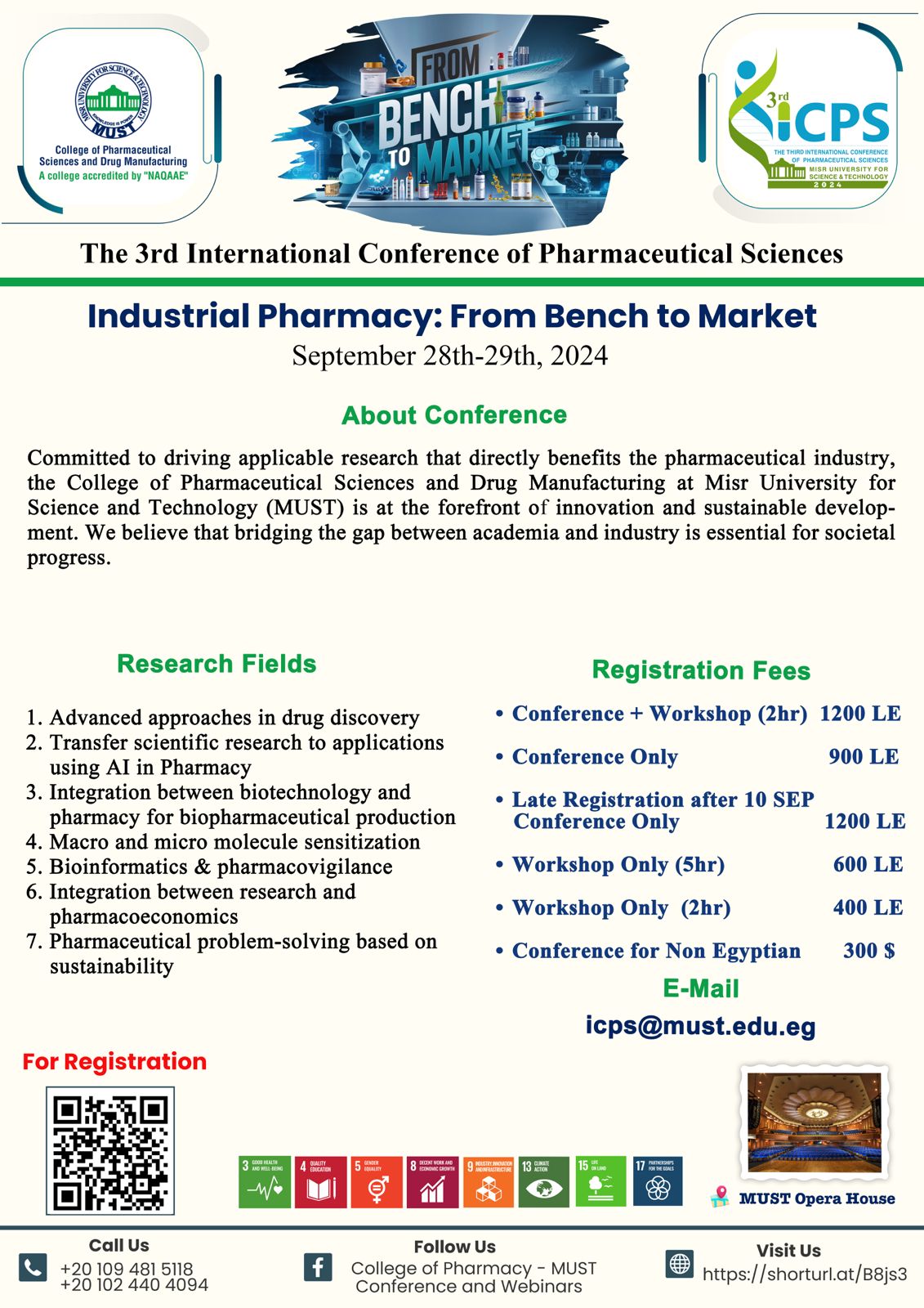 We are honored to host the 3rd International Conference on Pharmaceutical Sciences (ICPS3) titled “Industrial Pharmacy: From Lab to Market” from September 28 to 29, 2024.