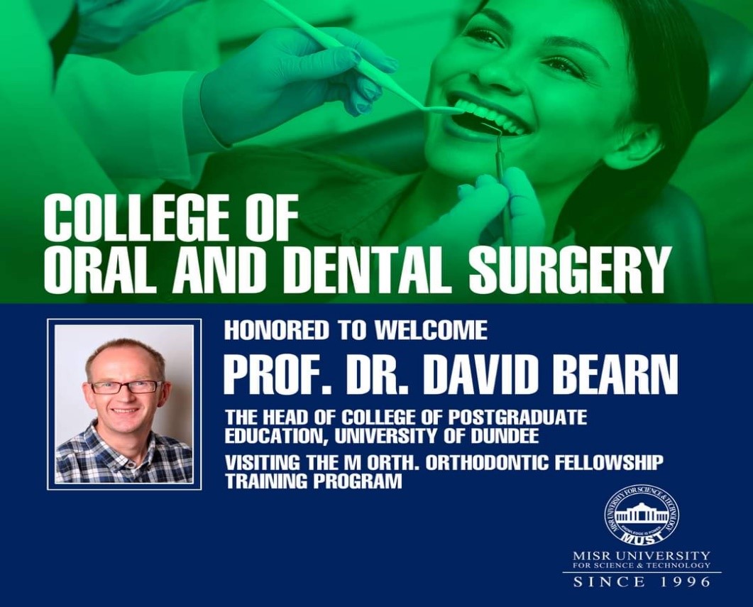 Under the patronage of Mr. Khaled Al-Toukhi, Chairman of the Board of Trustees, Prof. Ashraf Haider Ghaleb, President of the University, and Prof. Hala Al-Menoufy, Dean of the Faculty of Oral and Dental Medicine and Surgery, the faculty welcomed Prof. David Byrne, Head of Postgraduate Studies, College of Dentistry – University of Dundee, UK, College. This visit is to activate the cooperation agreement between Misr University for Science and Technology and the Royal College of Surgeons in Edinburgh. The visit of Prof. Byrne was after the approval of the British Fellowship program in the faculty. The faculty represented in the dean, Prof. Hala Al-Menoufy, the vice deans, and a group of the faculty members welcomed Prof. Bryne. The visit program included the following: a visit to the fellowship clinics in the faculty, direct communication with students (Orthodontics MORTH), meeting with faculty members participating in teaching and supervising the program in the faculty. Cases were presented by fellowship students.