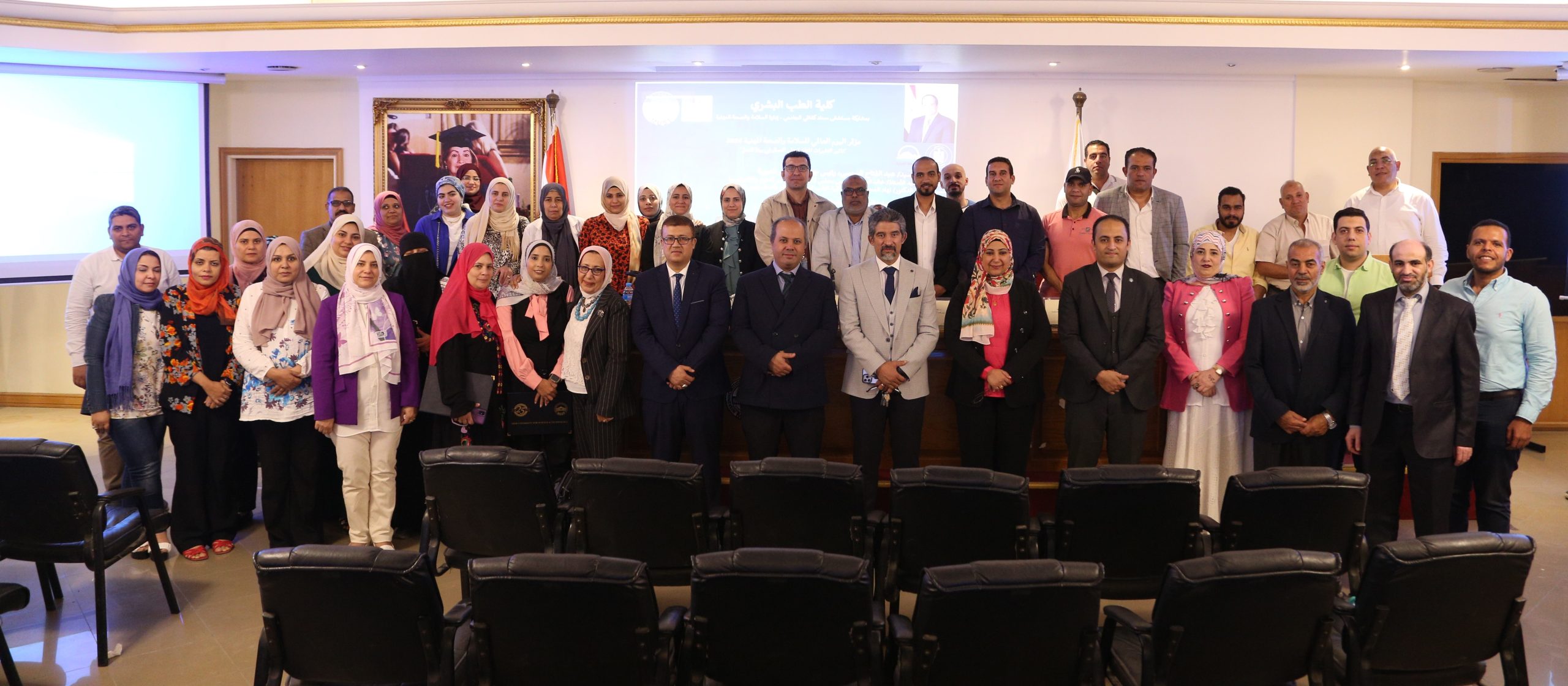 The conference was supervised by Professor Dr. Ahmed Fouad, the College’s Vice-Dean for Community Service and Environmental Affairs, and featured the participation of Professor Dr. Mohamed Zazaou, Executive Director of Souad Kafafi University Hospital, and the hospital’s Occupational Safety and Health Administration.